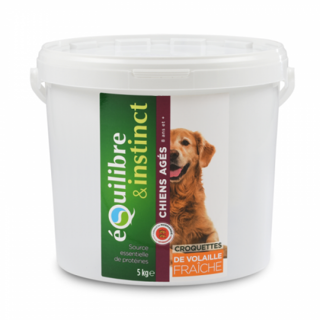 Les croquettes volaille fraîche Equilibre & Instinct pour chien Senior sont élaborées en Normandie par des vétérinaires pour être adaptées aux besoins nutritionnels spécifiques de nos compagnons âgés (+ 8 ans). Fabriqué en France : OuiMarque : Equilibre et InstinctContenance : Sac 5 Kg, Sac 14 KgSaveur : VolailleQuantité recommandée : Taille Animal : Petit, MoyenAge du chien : Senior
