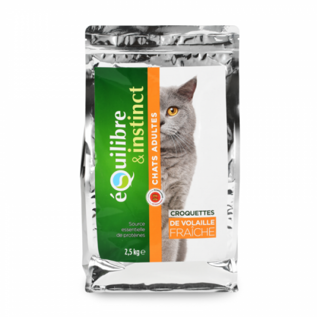 Les croquettes volaille fraîche Equilibre & Instinct pour chat Adulte sont élaborées par des vétérinaires en Normandie afin de proposer une recette complète qui répond parfaitement aux besoins énergétiques des chats adultes. Fabriqué en France : OuiMarque : Equilibre et InstinctAge du chat : AdulteContenance : Sac 2,5 Kg, Sac 5 KgSaveur : VolailleQuantité recommandée : Taille Animal : Toutes tailles